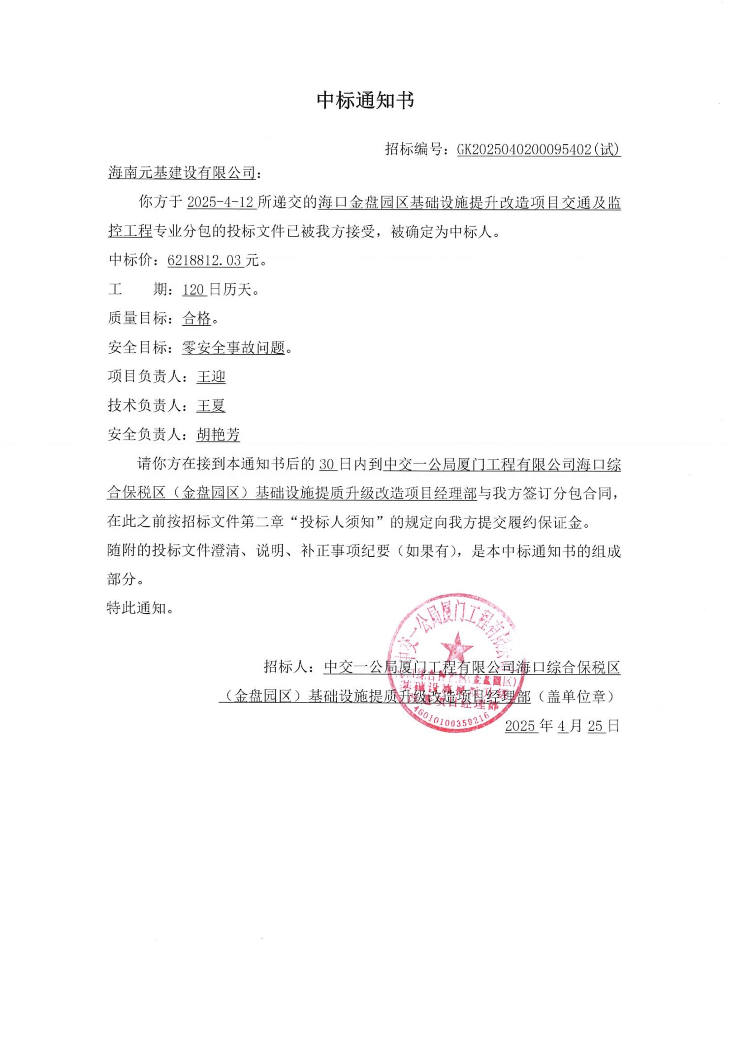 我司于2025年4月25日成功中標(biāo)??诮鸨P園區(qū)基礎(chǔ)設(shè)施提升改造項(xiàng)目交通及監(jiān)控工程,該項(xiàng)目位于??谑旋埲A區(qū),東至金牛路、南至白水塘路、西至丘海大道、北至南海大道。擬改造道路總長(zhǎng)10.288km